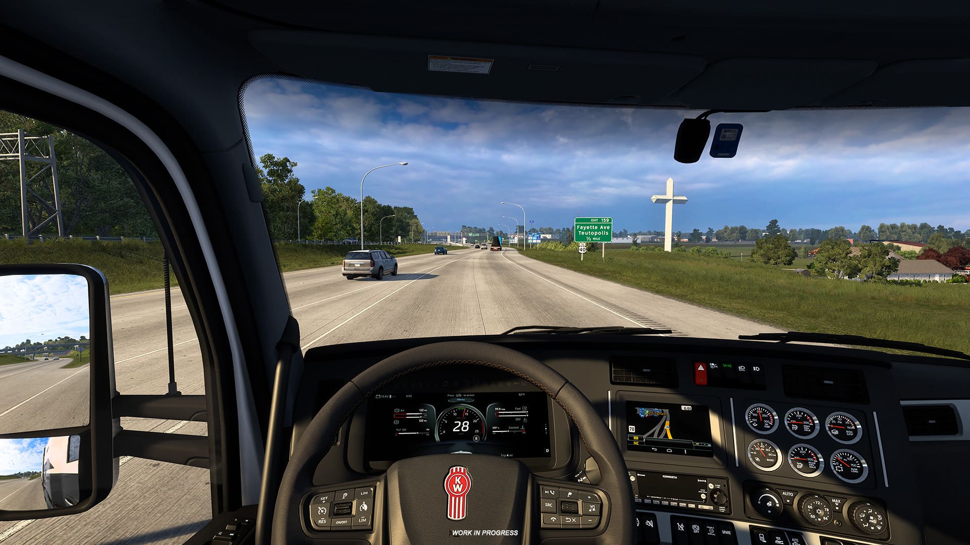 Known as the “Crossroads of Opportunity”, Effingham sits at the intersection of major highways, making it a natural and memorable stop along your delivery routes. As you roll into the city, one landmark is impossible to miss: the famous Effingham Cross, towering near the highway. Faithfully recreated by our map designers, this iconic structure serves as a striking visual beacon for drivers passing through the area.